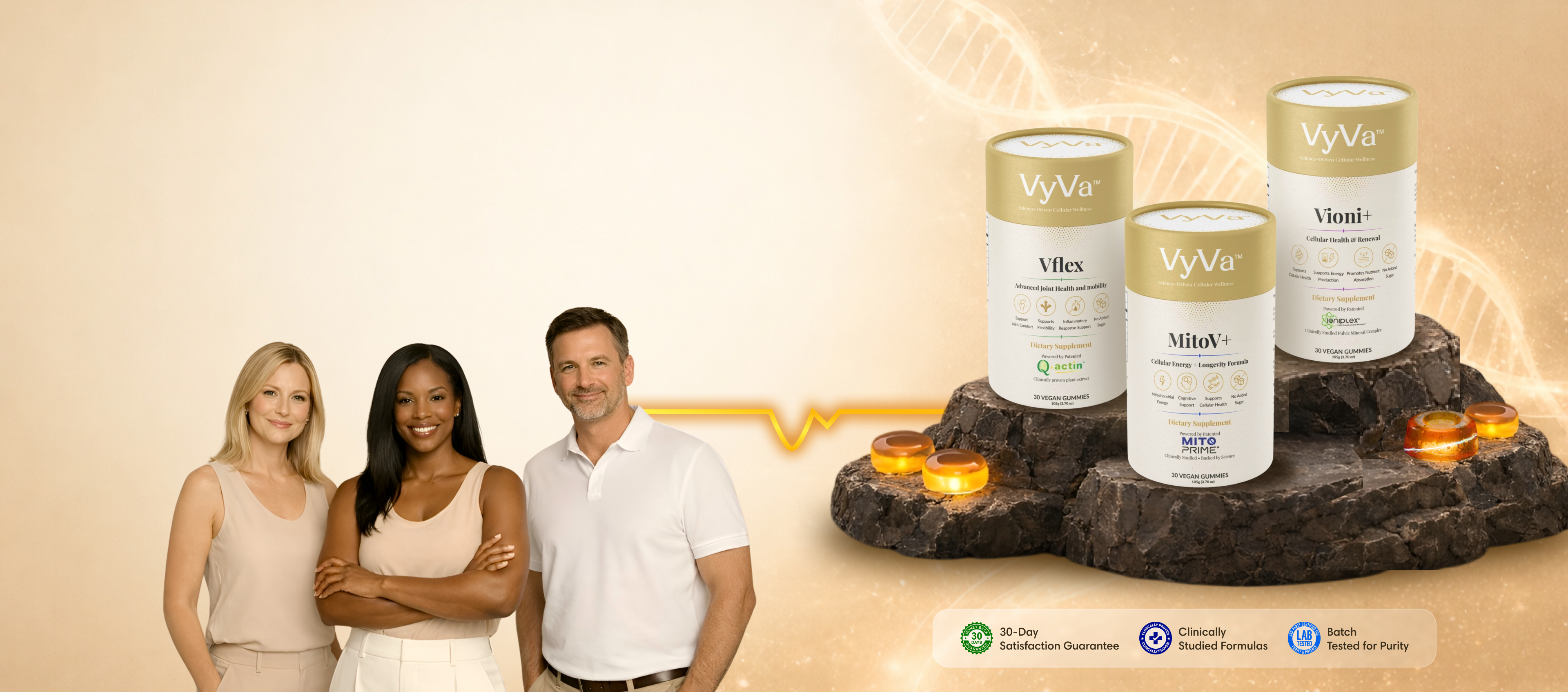 At Vyva, we don’t fight aging, we unlock ageless confidence, clinically proven, cell by cell. For adults 35+, Vyva delivers a personalized wellness ritual: advanced supplements and science-powered skincare, integrated into one complete system.